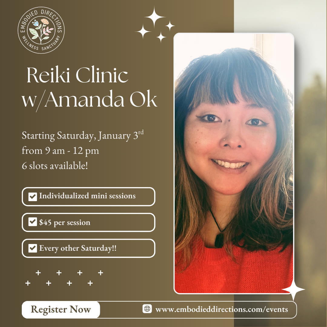 A short, supportive Reiki session with Amanda Ok, designed to offer gentle energetic care and grounding in a shared, clinic-style setting. These 30-minute mini sessions are an accessible way to […] |