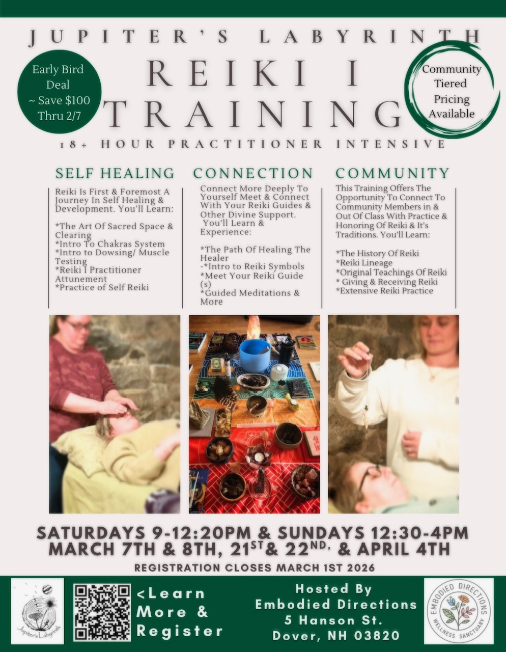 TrainingSaturdays 9-12:30pm pm & Sundays 12:30-4pm March 7th & 8th, 21st & 22nd & April 4th 2026 oin Amanda Stanley CHP, CRIVPT of Jupiter’s Labyrinth for an 18+hr Practitioner Intensive into the ancient healing art of Reiki. In A Sea Of “ One & Done” Single Weekend Reiki Trainings That Leave Students Lacking Confidence & […]